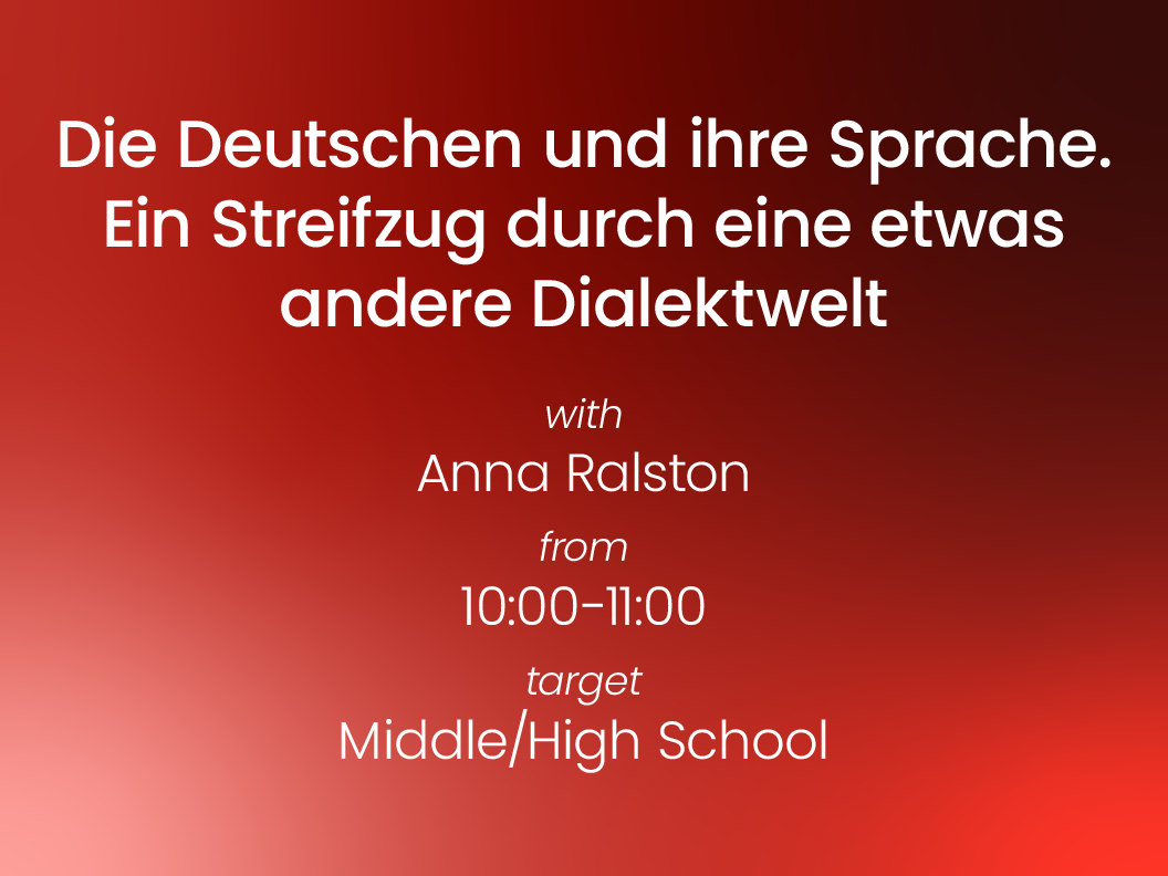 Wenn man Dr. Internet zu Rate zieht – und wer bildet sich nicht gern einmal zwischendurch weiter – wird einem sehr schnell bewusst, dass Deutschland mittlerweile mehr ist als nur Schwarzwald – NeuSchwanstein und kein Tempolimit auf der Autobahn. Deutschland ist und wird immer mehr. In diesem interaktiven Workshop wollen wir Sie mitnehmen auf eine Entdeckungsreise ins Land der Sprache und der Dialekte.